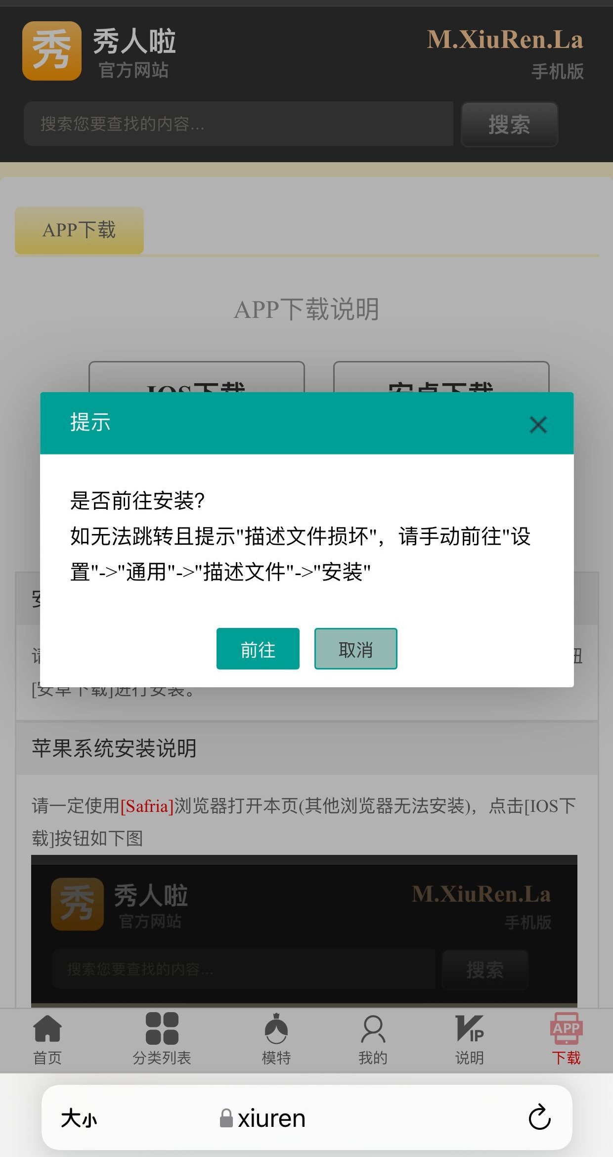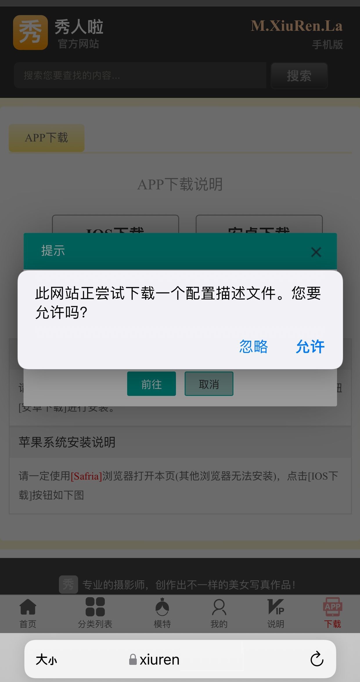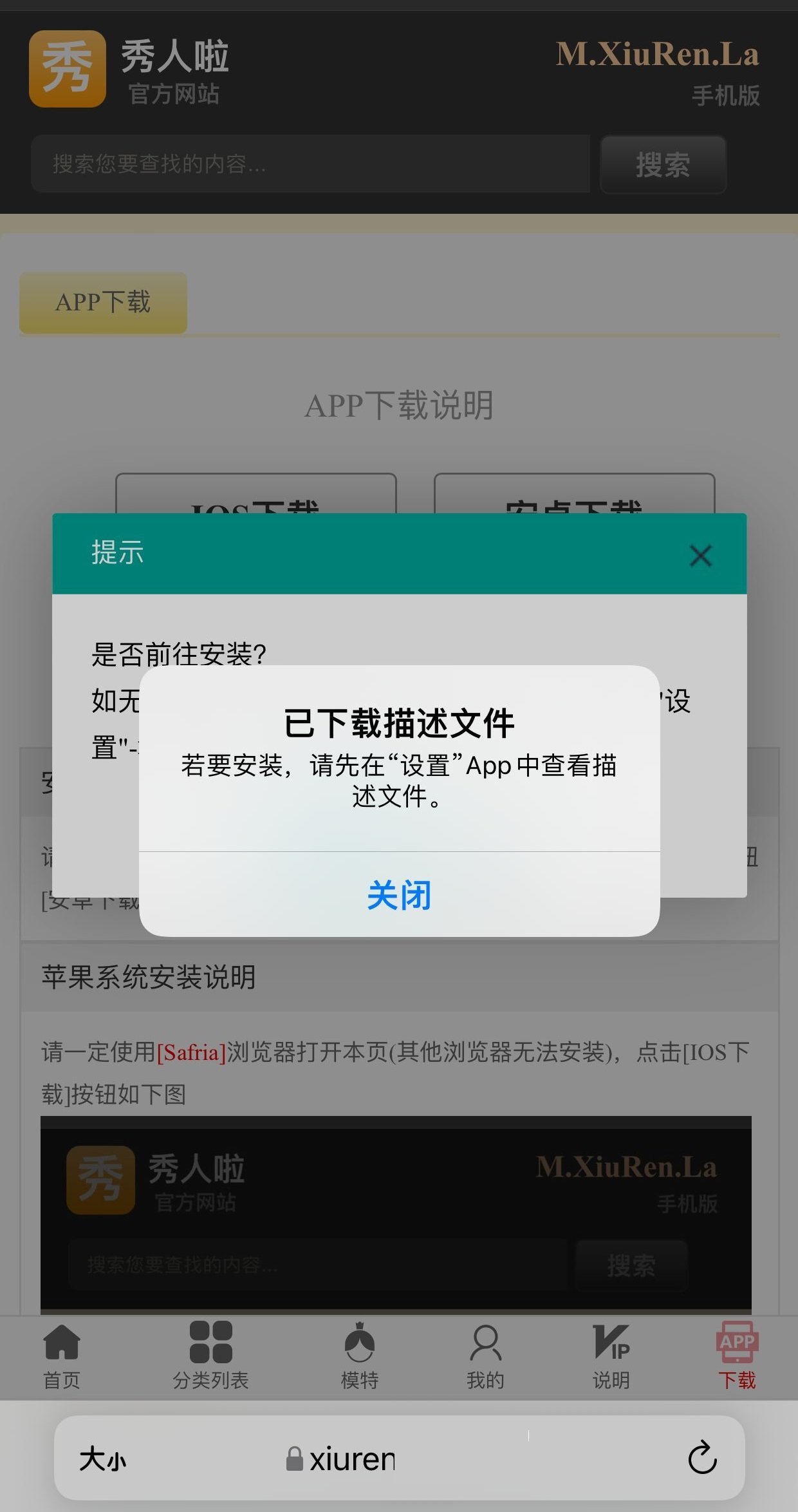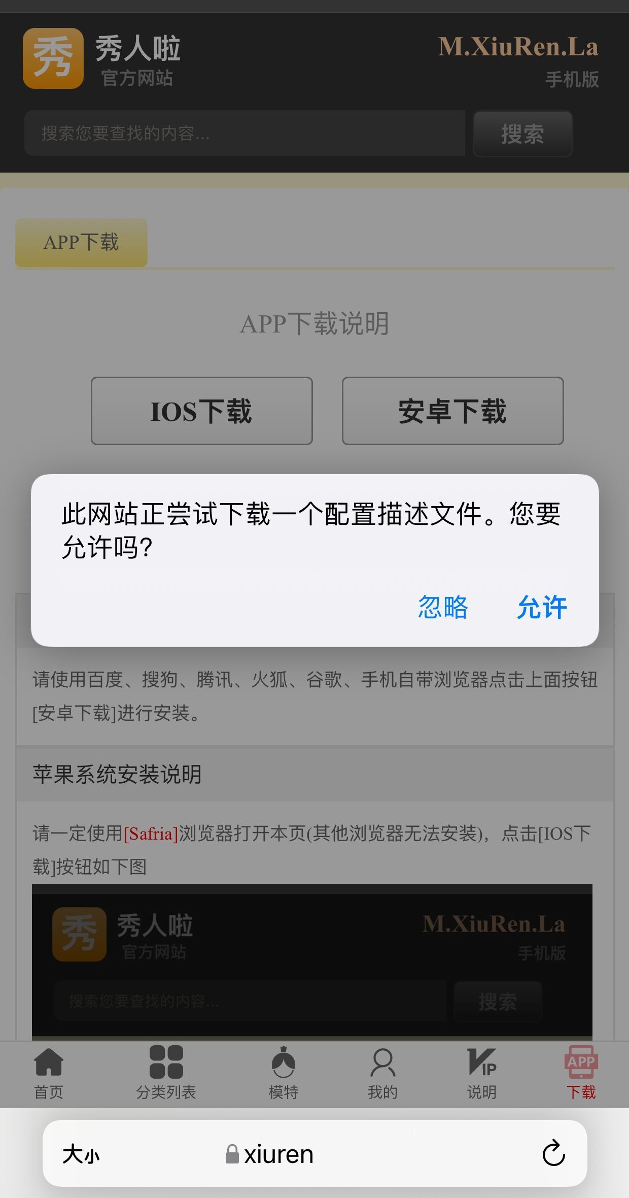 浏览器打开本页(其他浏览器无法安装),点击[IOS下载]按钮如下图