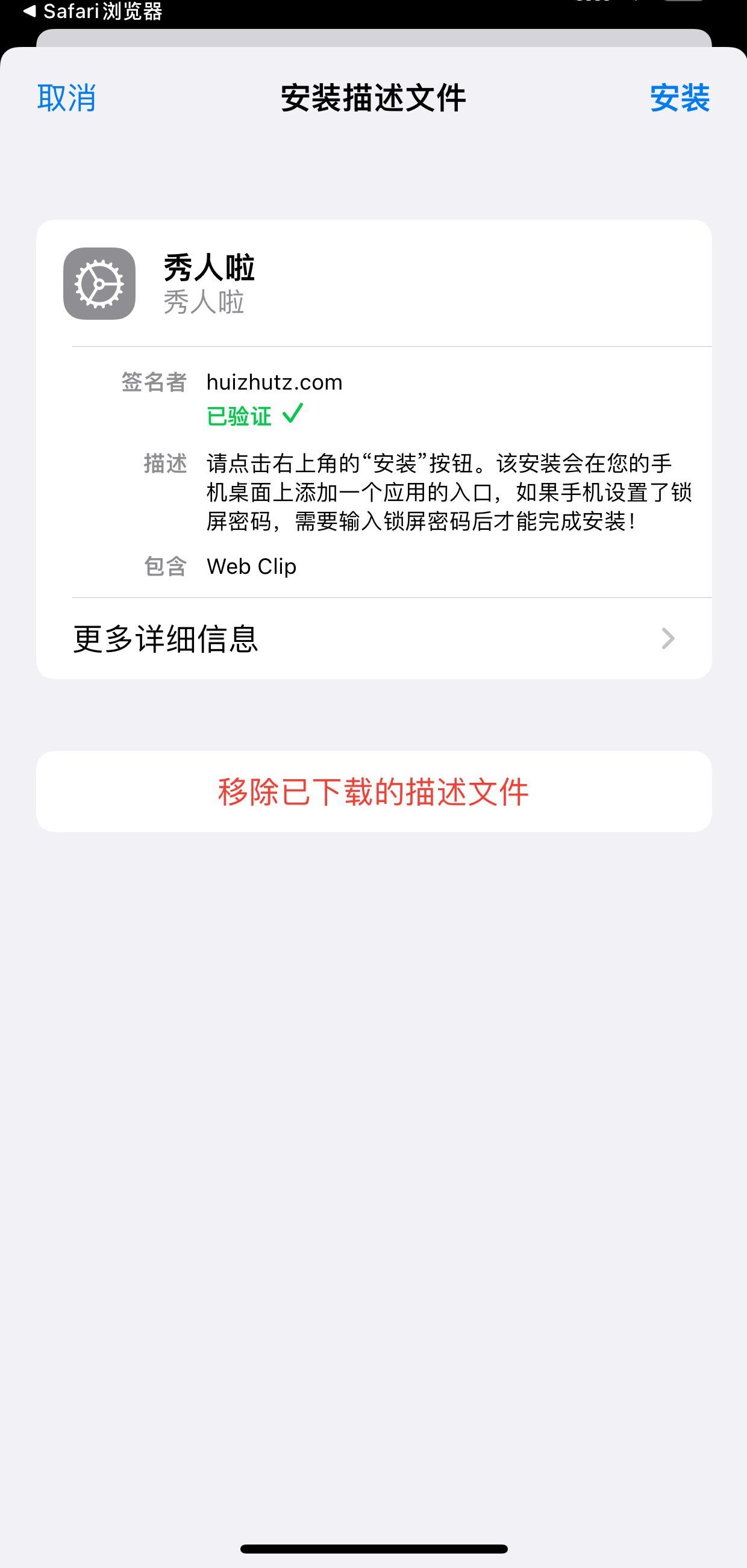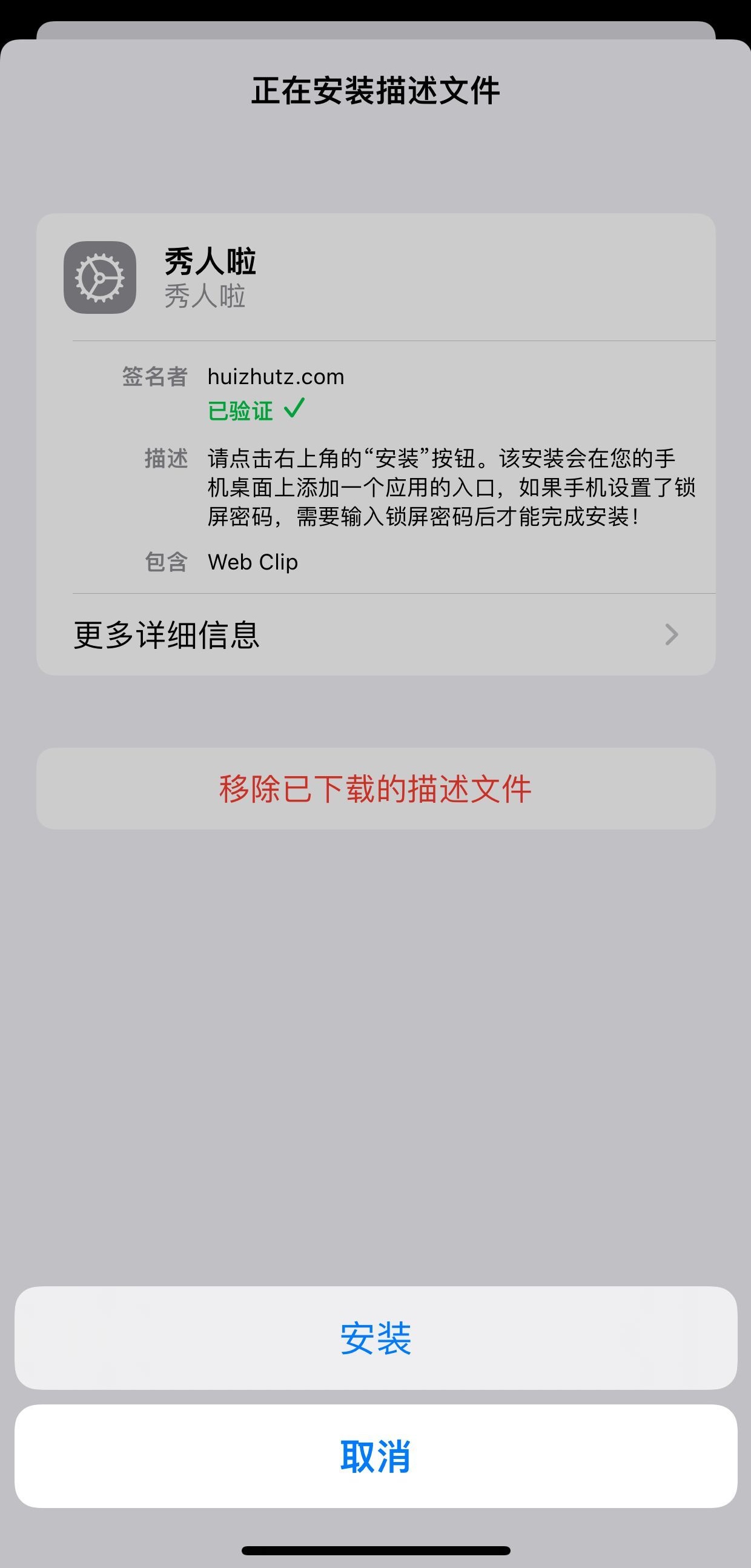 点击右上角的安装按钮后请输入您的手机锁屏密码如图